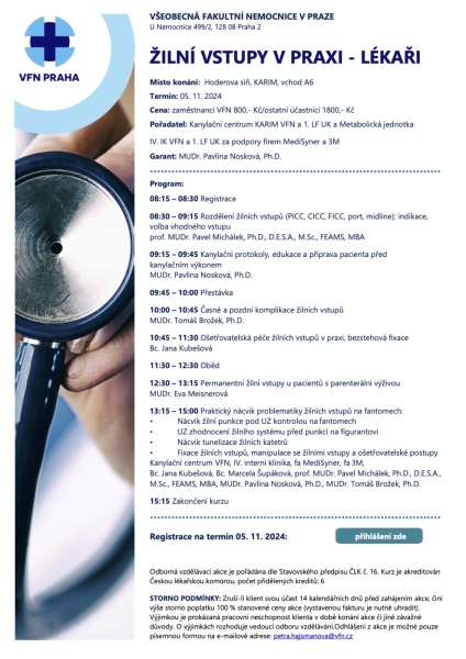 WORKSHOP - Žilní vstupy v praxi pro lékaře 5.11.2024